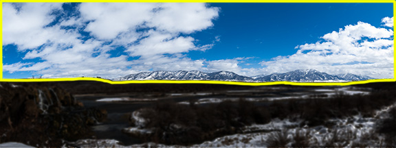 Herold wanted plenty of angle test photos to choose from. The goal with our first trip in Winter was to capture multiple angles of a full panorama. This included trekking off the road in 4 foot deep snow risking accidentally walk into the cliff overhang. Four angles were tested, three were liked, one angle was a clear winner.